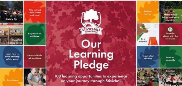 Many memorable experiences help bring learning to life at Stivichall. Pupils and staff have worked together to capture these in our Stivichall pledge of 100 things that our children have the opportunity to experience on their journey through school. To find out more about our exciting and engaging curriculum, click on the 'Our Learning' tab on our website.